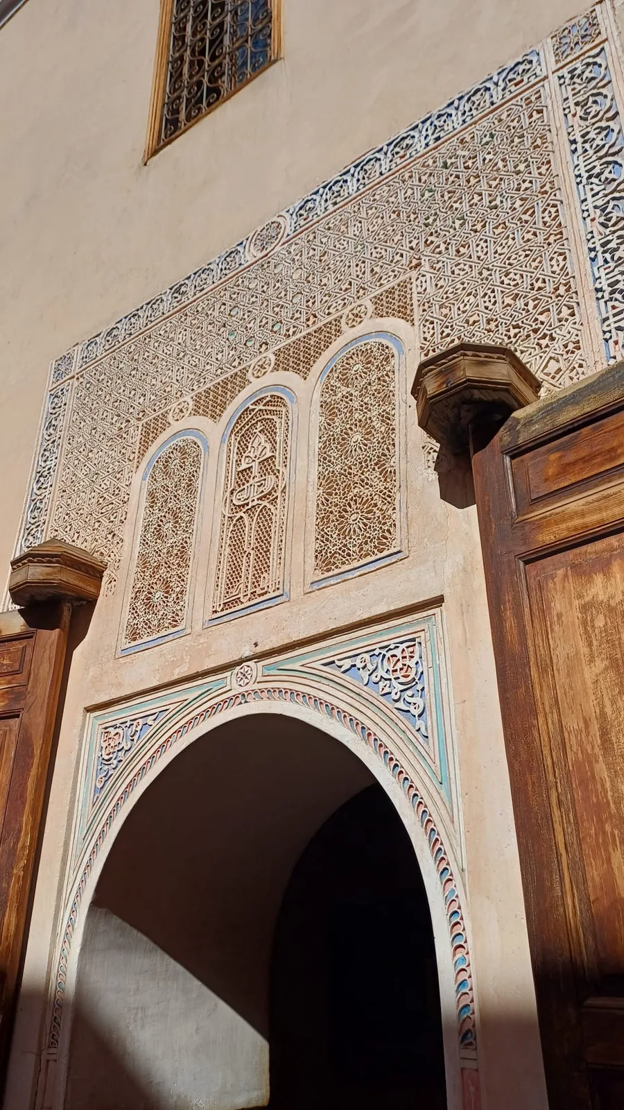 Do umýváren pod mešitou se vchází titanovými dveřmi, které se dají vysunout...umývárny jsou stejně velké pro muže i ženy..mužské do tyrkysova, ženské do žluta...jsou zde verše z koránu ...