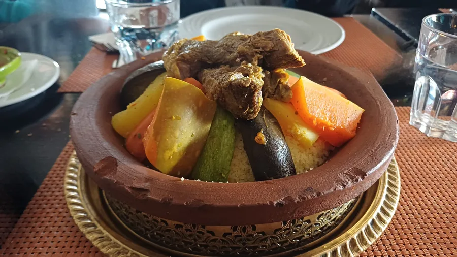 Obědy jsou dostatečné, chutné, jednoduché - kuře, jehněčí (opravdu ho umí upravit), rýže, brambory, kuskus (připravený přesně na skus), dušená zelenina, saláty, olivy, skvělá červená řepa, atd. A říkáme si, jak dobré pečivo tu nabízejí!