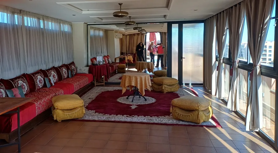 Spíme v hotelu Ibiza v Tangeru, což je pobřežní a přístavní město...část, kde jsme je zcela evropská a vrcholně luxusní...uffff...ještě že dnes bylo to modré městečko ...ale večeře byla skvostná...